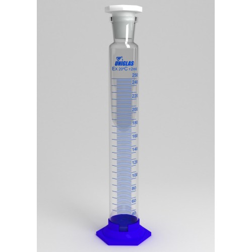 Proveta graduada base sextavada de polietileno, rolha de polietileno, grad.5ml, cap.500ml