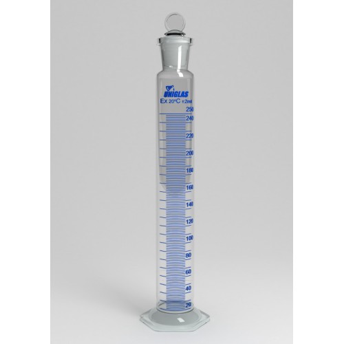 Proveta graduada base sextavada de vidro, rolha de vidro, grad.1ml, cap.250ml