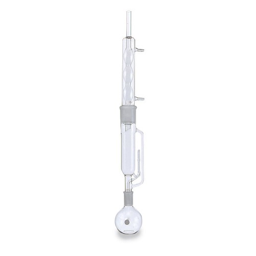 Extrator Soxhlet Completo Extra-Grande, extrator de 430mm c/junta sup.fêmea 71/60 e junta inf.macho 29/42, condensador junta inf.71/60, balão de 1.000ml c/junta 29/42, altura total 985mm