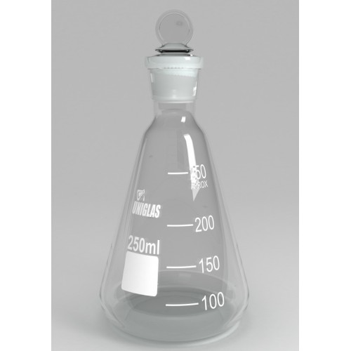 Frasco Erlenmeyer c/rolha de vidro, graduado cap.500ml